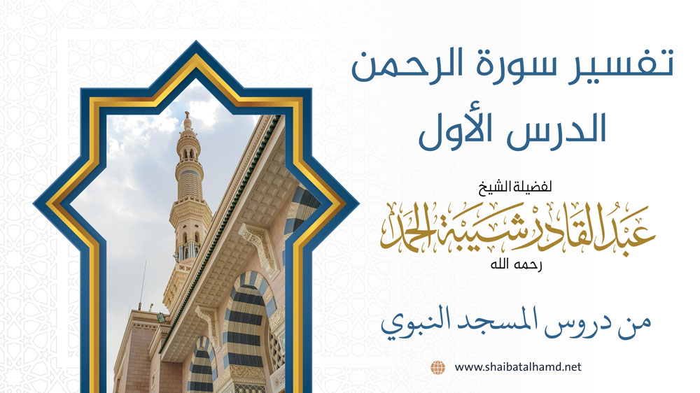 الدرس الأول من دروس تفسير سورة الرحمن من دروس المسجد النبوي تفسير الآيات من قوله تعالى {الرحمن} الآية 1 إلى قوله تعالى {فبأي آلاء ربكما تكذبان} الآية 13.