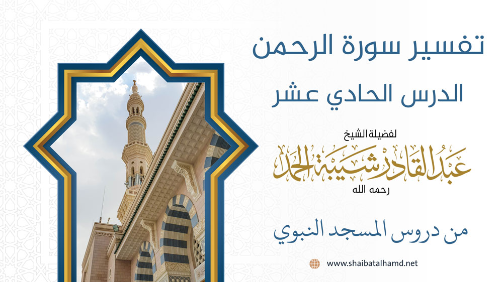 الدرس الثالث من دروس تفسير سورة الرحمن من دروس المسجد النبوي تفسير الآيات من قوله تعالى {الرحمن} الآية 1 إلى قوله تعالى {فبأي آلاء ربكما تكذبان} الآية 13.