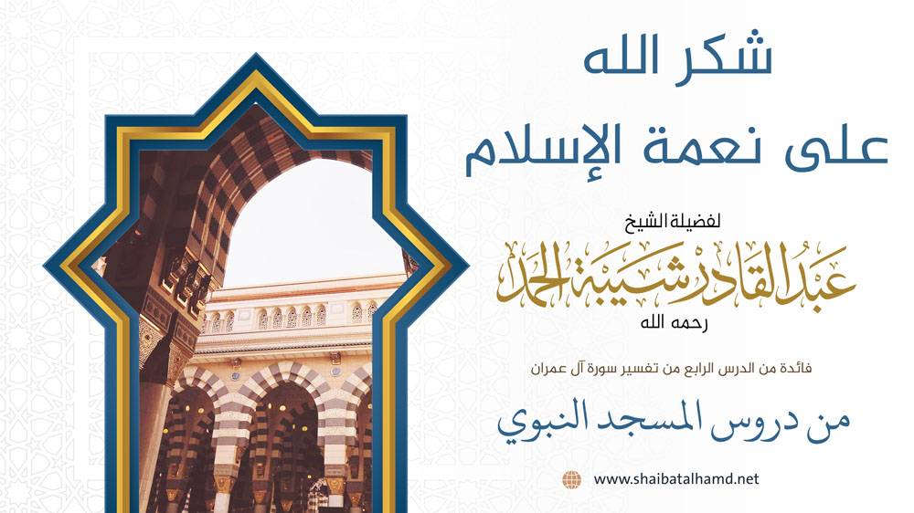 فائدة من الدرس الرابع من دروس تفسير سورة آل عمران والتي ألقيت في المسجد النبوي الشريف حول شكر الله على نعمة الإسلام.