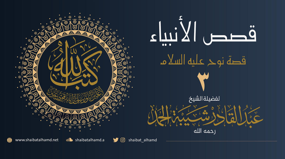 الحلقة السابعة من برنامج قصص الأنبياء والتي يتحدث فيها فضيلة الشيخ عبد القادر شيبة الحمد عن نوح عليه السلام وبذل السبل في دعوة قومه.