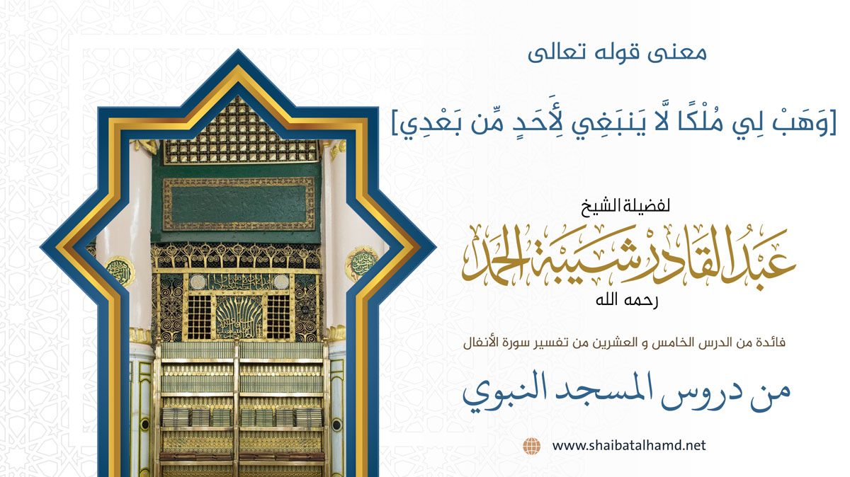 فوائد من تفسير سورة الأنفال معنى قوله تعالى [وَهَبْ لِي مُلْكًا لَّا يَنبَغِي لِأَحَدٍ مِّن بَعْدِي] 2021-01-10 - استمع تنزيل مشاركة مشاركة نسخ تم نسخ الرابط بنجاح إغلاق 0:00 0:00