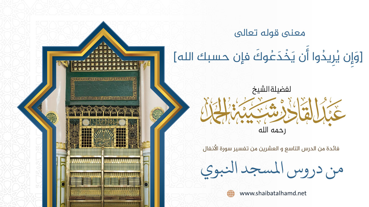 فوائد من تفسير سورة الأنفال معنى قوله تعالى [وَإِن يُرِيدُوا أَن يَخْدَعُوكَ فإن حسبك الله] 2021-01-10 - استمع تنزيل مشاركة مشاركة نسخ تم نسخ الرابط بنجاح إغلاق 0:00 0:00