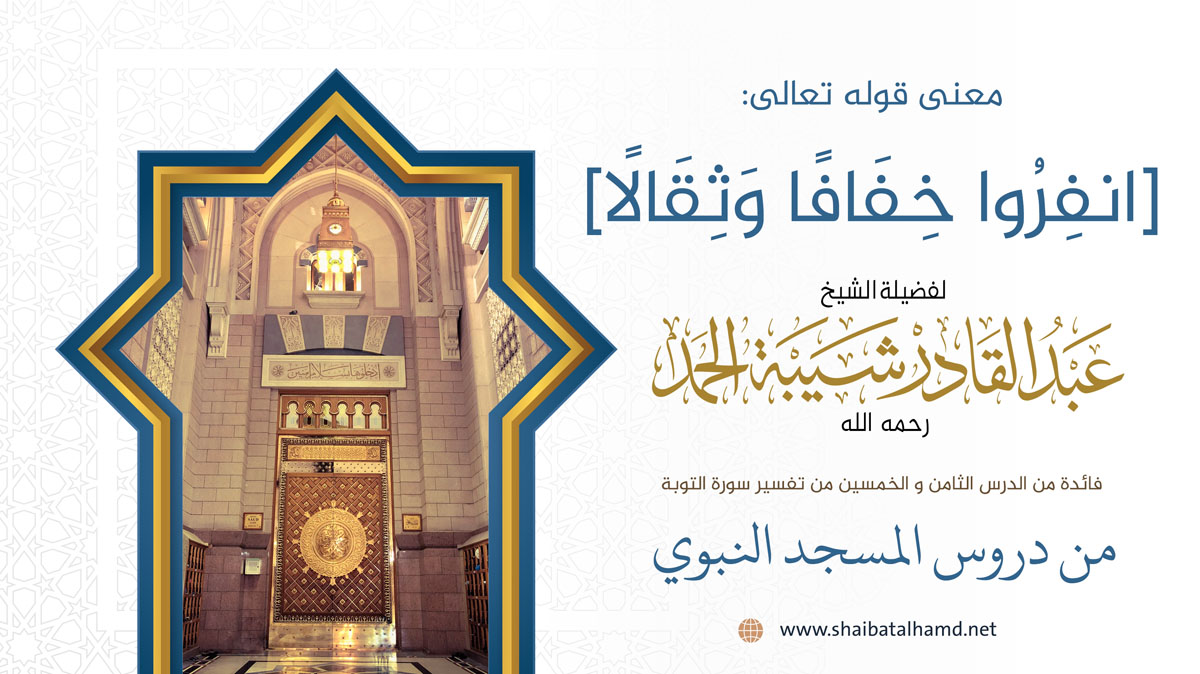 فوائد من تفسير سورة التوبة معنى قوله تعالى: [انفِرُوا خِفَافًا وَثِقَالًا] 2021-01-29 - استمع تنزيل مشاركة مشاركة نسخ تم نسخ الرابط بنجاح إغلاق 0:00 0:00
