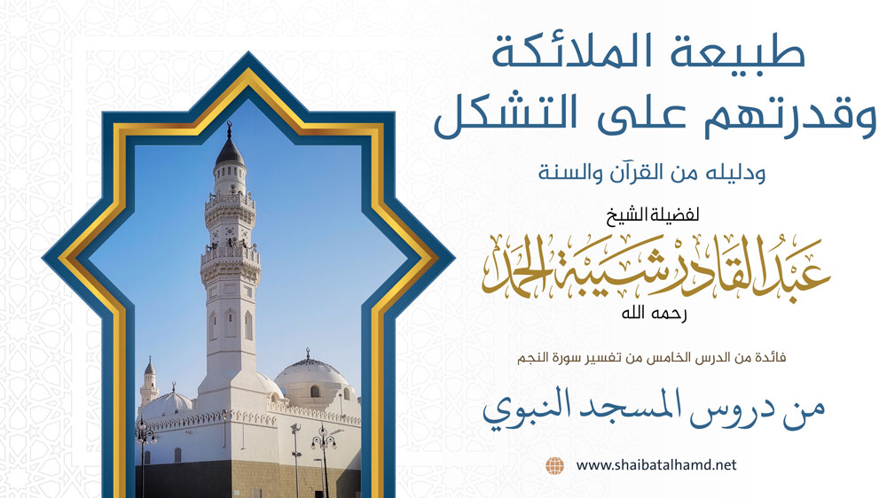 فائدة من الدرس الخامس من دروس تفسير سورة النجم والتي ألقيت في المسجد النبوي الشريف حول طبيعة الملائكة وقدرتهم على التشكل بالأشكال الجميلة ودليله من القرآن والسنة.