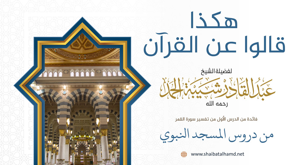 فائدة من الدرس الأول من دروس تفسير سورة القمر والتي ألقيت في المسجد النبوي الشريف حول هكذا قالوا عن القرآن.
