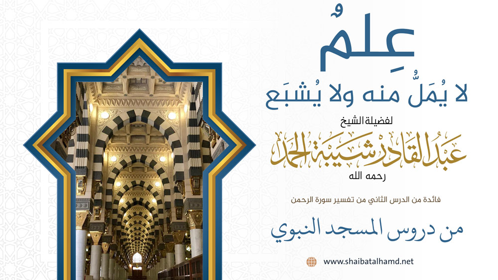 فائدة من الدرس الثاني من دروس تفسير سورة الرحمن والتي ألقيت في المسجد النبوي الشريف حول عِلمٌ لا يُمَلُّ منه ولا يُشبَع.