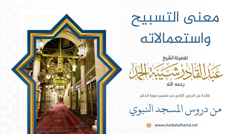 فائدة من الدرس الثاني من دروس تفسير سورة الحشر والتي ألقيت في المسجد النبوي الشريف حول معنى التسبيح واستعمالاته.