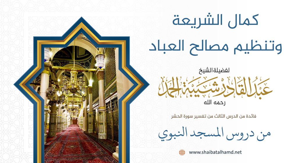 فائدة من الدرس الثالث من دروس تفسير سورة الحشر والتي ألقيت في المسجد النبوي الشريف حول كمال الشريعة وتنظيم مصالح العباد.