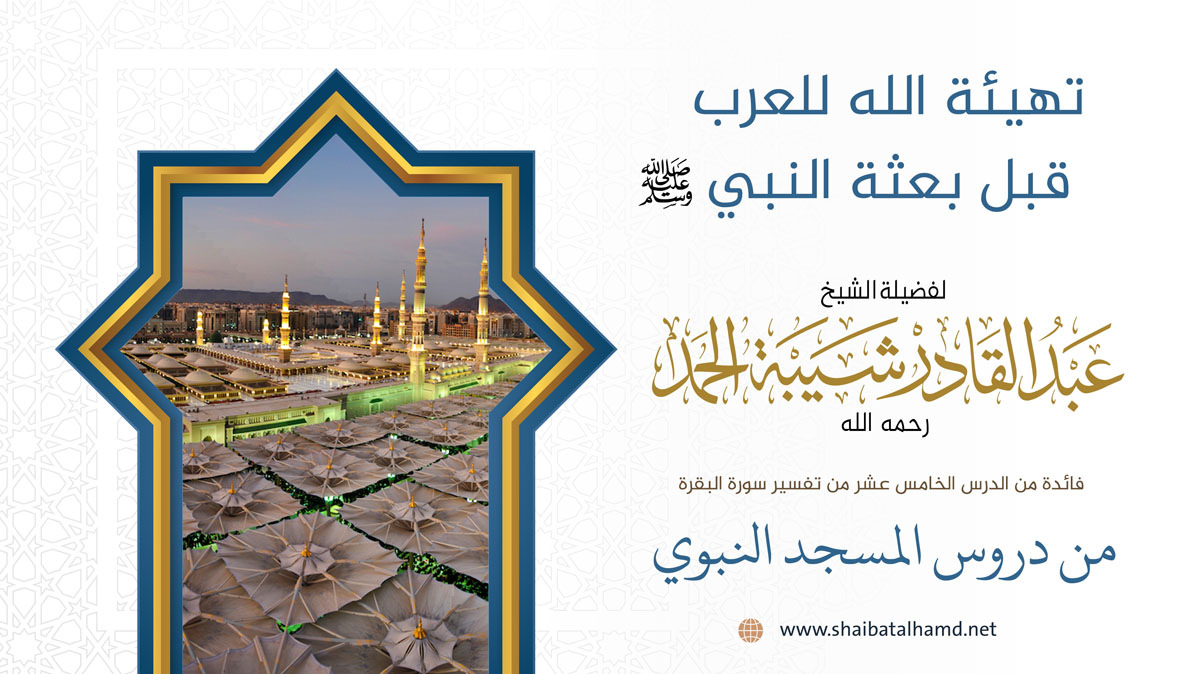 فائدة من الدرس الخامس عشر من دروس تفسير سورة البقرة والتي ألقيت في المسجد النبوي الشريف حول تهيئة الله للعرب قبل بعثة النبي عليه السلام.
