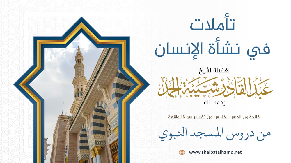 فائدة من الدرس الخامس من دروس تفسير سورة الواقعة والتي ألقيت في المسجد النبوي الشريف حول تأملات في نشأة الإنسان.