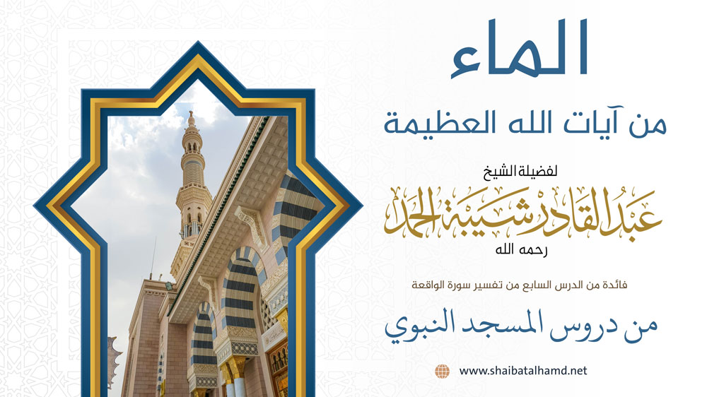 فائدة من الدرس السابع من دروس تفسير سورة الواقعة والتي ألقيت في المسجد النبوي الشريف حول أن الماء من آيات الله العظيمة.