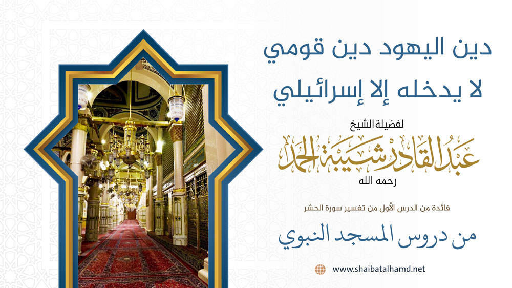 فائدة من الدرس الأول من دروس تفسير سورة الحشر والتي ألقيت في المسجد النبوي الشريف حول أن دين اليهود دين قومي لا يدخله إلا إسرائيلي.