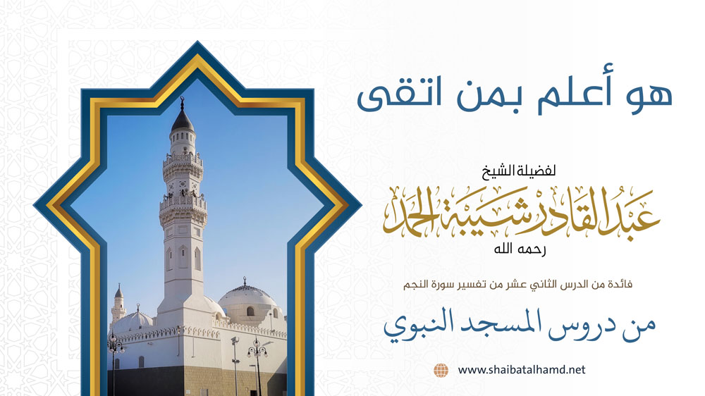 فائدة من الدرس الثاني عشر من دروس تفسير سورة النجم والتي ألقيت في المسجد النبوي الشريف حول أن الله هو أعلم بمن اتقى.