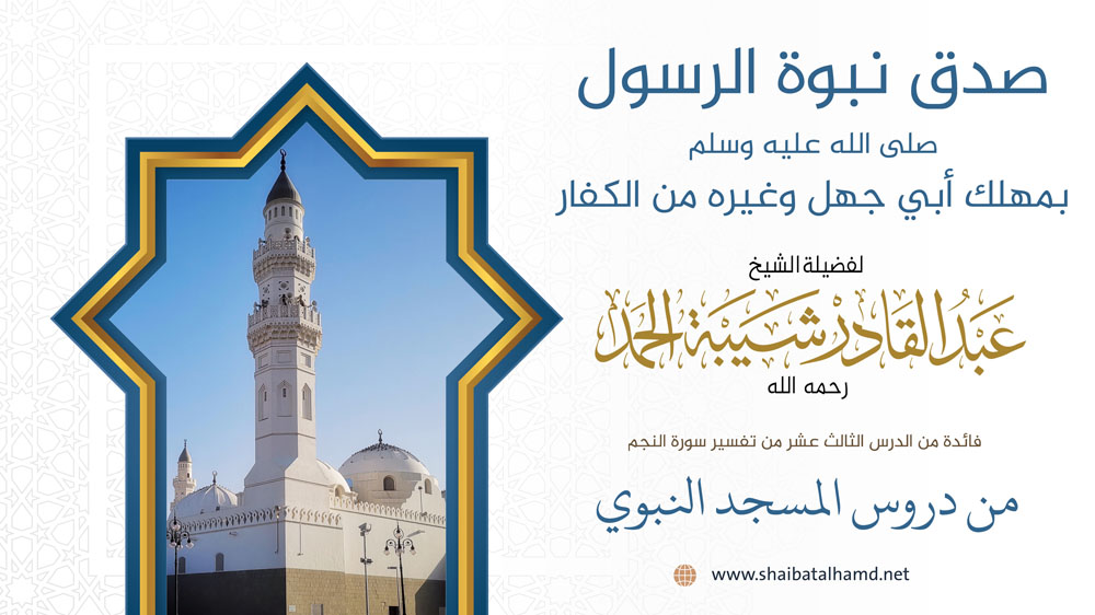 فائدة من الدرس الثالث عشر من دروس تفسير سورة النجم والتي ألقيت في المسجد النبوي الشريف حول صدق نبوة النبي محمد عليه الصلاة والسلام بمهلك أبي جهل وغيره من الكفار.