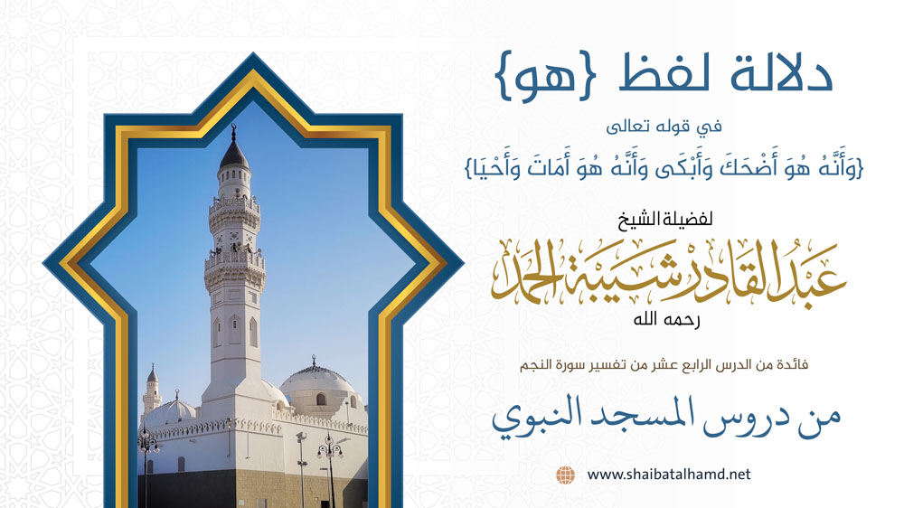 فائدة من الدرس الرابع عشر من دروس تفسير سورة النجم والتي ألقيت في المسجد النبوي الشريف حول دلالة {هو} في قوله تعالى {وأنه هو أضحك وأبكى وأنه هو أمات وأحيا}.