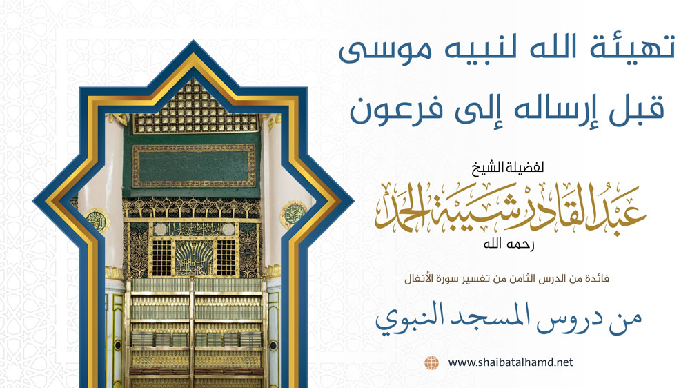 فائدة من الدرس الثامن من دروس تفسير سورة الأنفال والتي ألقيت في رحاب المسجد النبوي حول تهيئة الله لنبيه موسى قبل إرساله إلى فرعون.