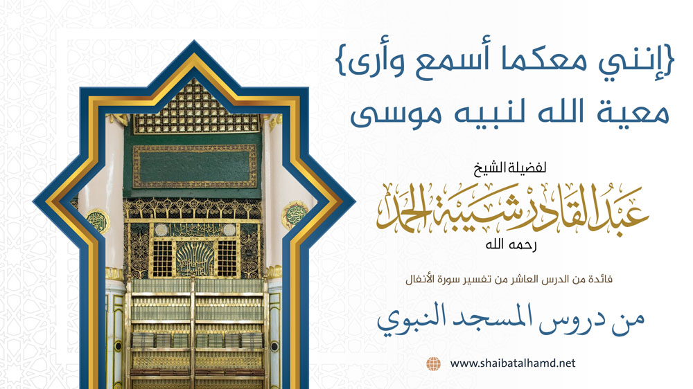 فائدة من الدرس العاشر من دروس تفسير سورة الأنفال والتي ألقيت في رحاب المسجد النبوي حول تفسير {إنني معكما أسمع وأرى} ومعية الله لنبيه موسى.
