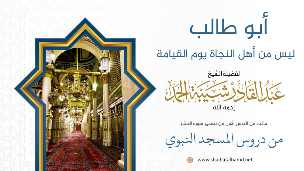 فائدة من الدرس الأول من دروس تفسير سورة الحشر والتي ألقيت في المسجد النبوي الشريف حول أن أبو طالب عم النبي ليس من أهل النجاة يوم القيامة.