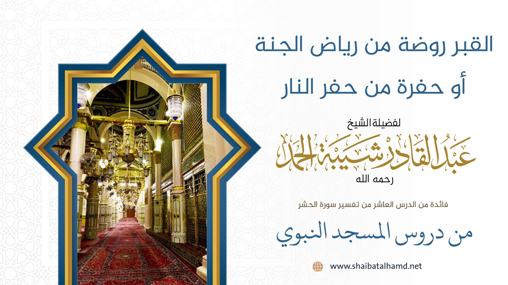 فائدة من الدرس العاشر من دروس تفسير سورة الحشر والتي ألقيت في المسجد النبوي الشريف حول القبر روضة من رياض الجنة أو حفرة من حفر النار.