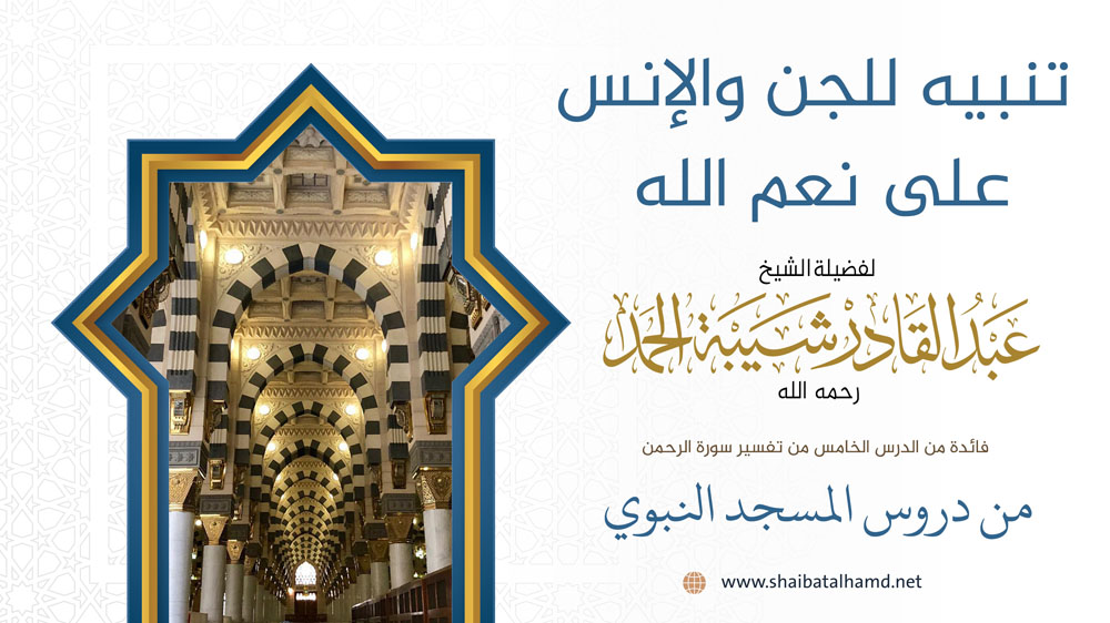 فائدة من الدرس الخامس من دروس تفسير سورة الرحمن والتي ألقيت في المسجد النبوي الشريف حول تنبيه للجن والإنس على نعم الله.