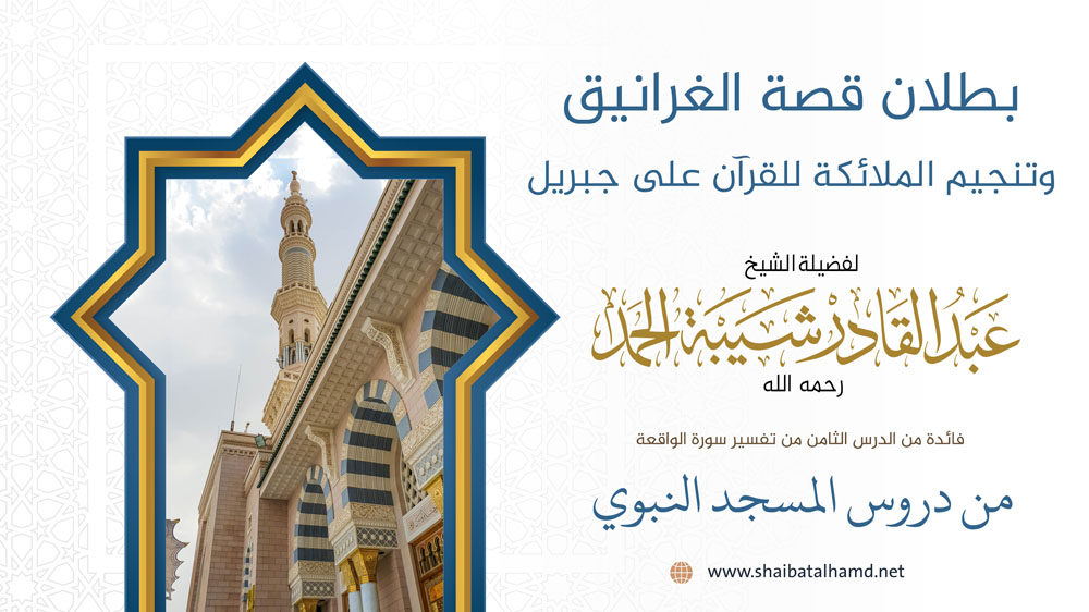 فائدة من الدرس السابع من دروس تفسير سورة الواقعة والتي ألقيت في المسجد النبوي الشريف حول بطلان قصة الغرانيق، وتنجيم الملائكة للقرآن على جبريل.