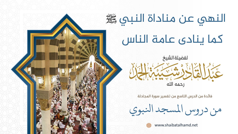 فائدة من الدرس التاسع من دروس تفسير سورة المجادلة والتي ألقيت في المسجد النبوي الشريف حول النهي عن مناداة النبي كما ينادى عامة الناس.