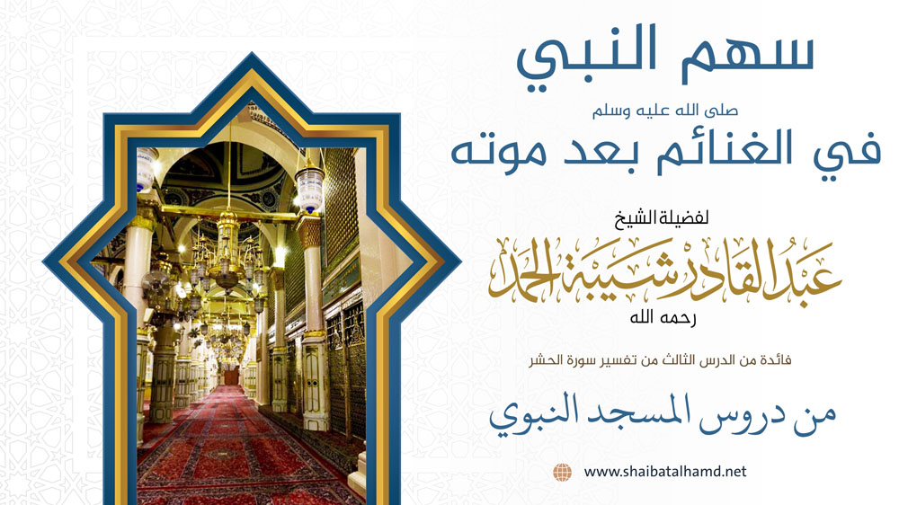 فائدة من الدرس الثالث من دروس تفسير سورة الحشر والتي ألقيت في المسجد النبوي الشريف حول سهم النبي ــ صلى الله عليه وسلم ــ بعد موته.