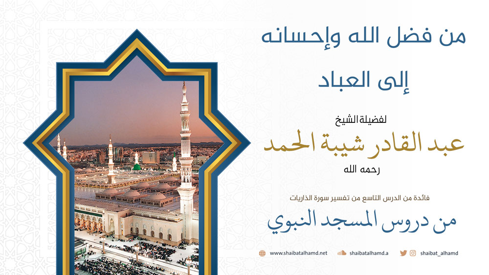 فائدة من الدرس التاسع من دروس تفسير سورة الذاريات والتي ألقيت في المسجد النبوي الشريف حول فضل الله وإحسانه إلى العباد.