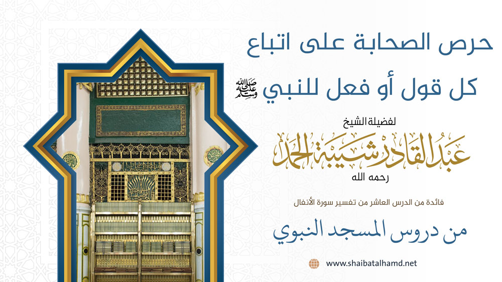 فائدة من الدرس العاشر من دروس تفسير سورة الأنفال والتي ألقيت في رحاب المسجد النبوي حول حرص الصحابة على اتباع كل قول أو فعل للنبي.