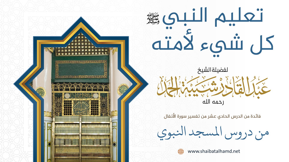 فائدة من الدرس الحادي عشر من دروس تفسير سورة الأنفال والتي ألقيت في رحاب المسجد النبوي حول تعليم النبي صلى الله عليه وسلم كل شيء لأمته.