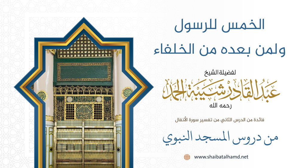 فائدة من الدرس الثاني من دروس تفسير سورة الأنفال والتي ألقيت في رحاب المسجد النبوي حول أن الخمس للرسول ولمن بعده من الخلفاء.