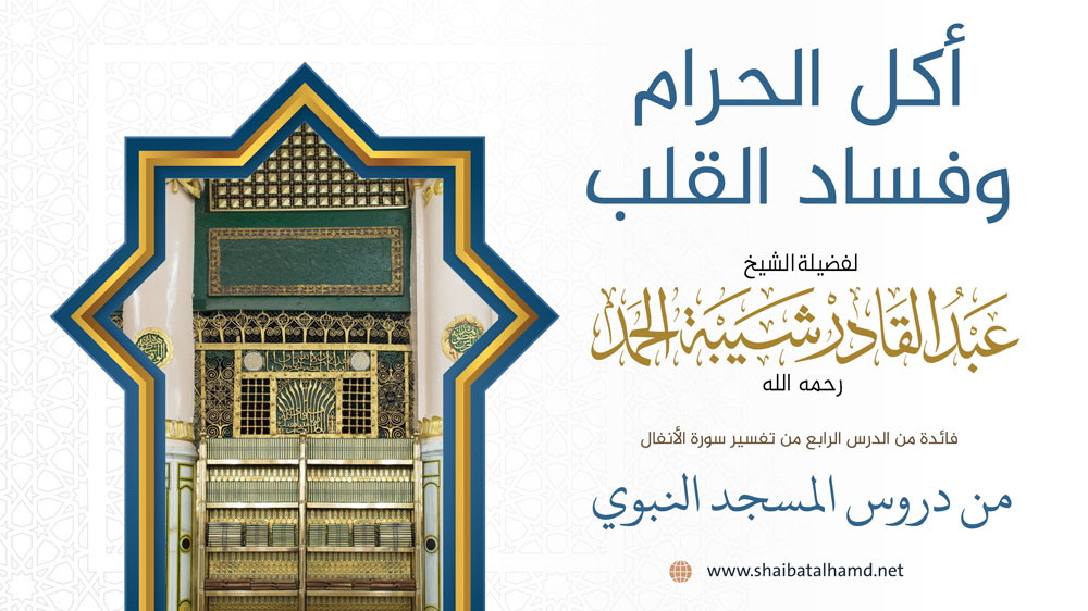 فائدة من الدرس الرابع من دروس تفسير سورة الأنفال والتي ألقيت في رحاب المسجد النبوي حول أكل الحرام وفساد القلب.