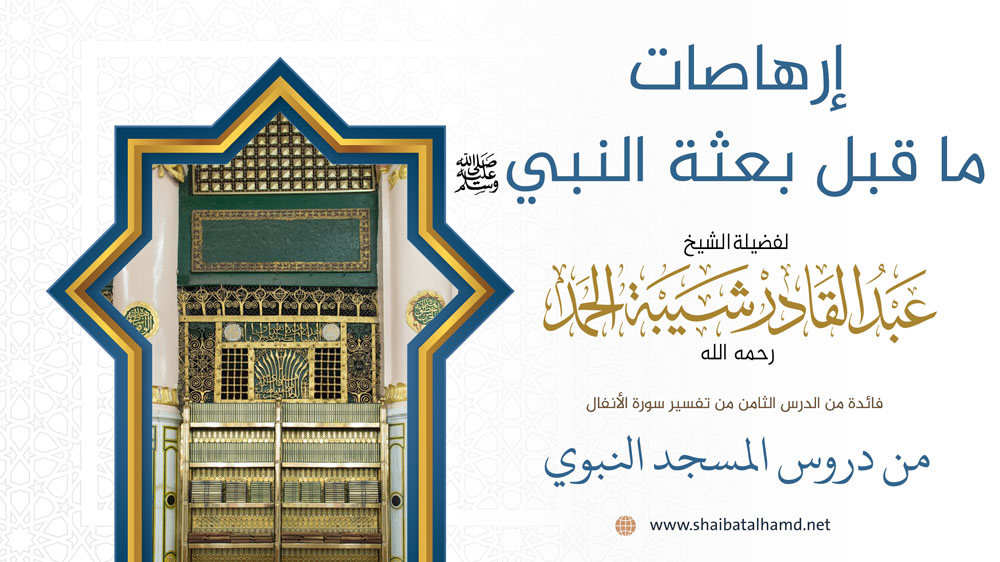 فائدة من الدرس الثامن من دروس تفسير سورة الأنفال والتي ألقيت في رحاب المسجد النبوي حول إرهاصات ما قبل بعثة النبي.