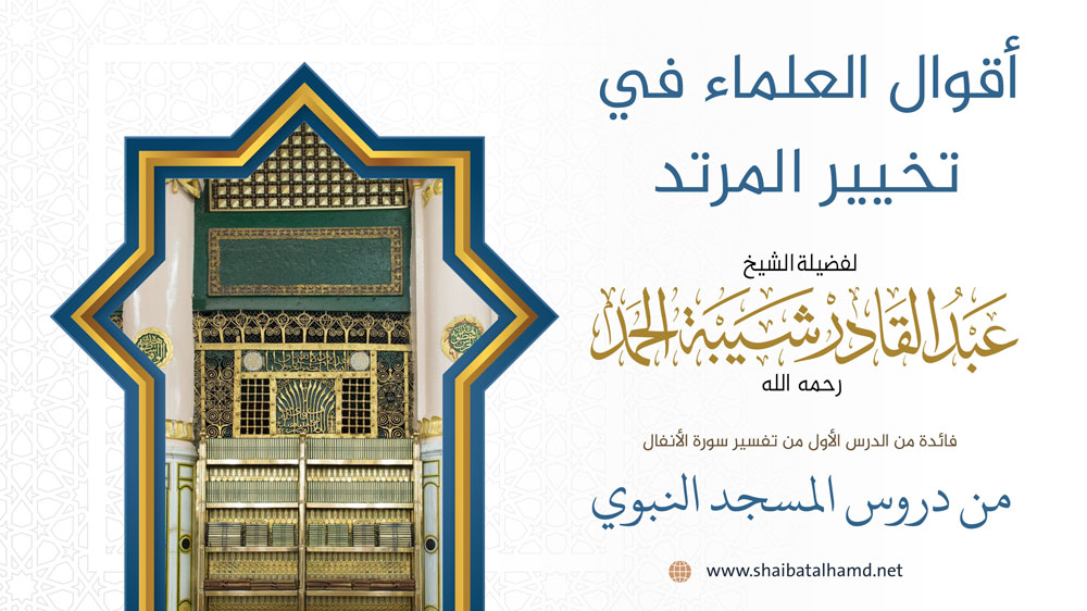 فائدة من الدرس الأول من دروس تفسير سورة الأنفال والتي ألقيت في رحاب المسجد النبوي حول أقوال العلماء في تخيير المرتد.