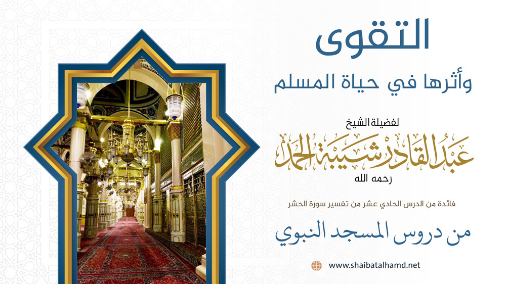 فائدة من الدرس الحادي عشر من دروس تفسير سورة الحشر والتي ألقيت في المسجد النبوي الشريف حول أهمية التقوى وأثرها في حياة المسلم.