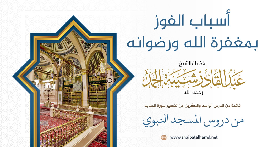 فائدة من الدرس الواحد والعشرون من دروس تفسير سورة الحديد والتي ألقيت في المسجد النبوي الشريف حول أسباب الفوز بمغفرة الله ورضوانه.
