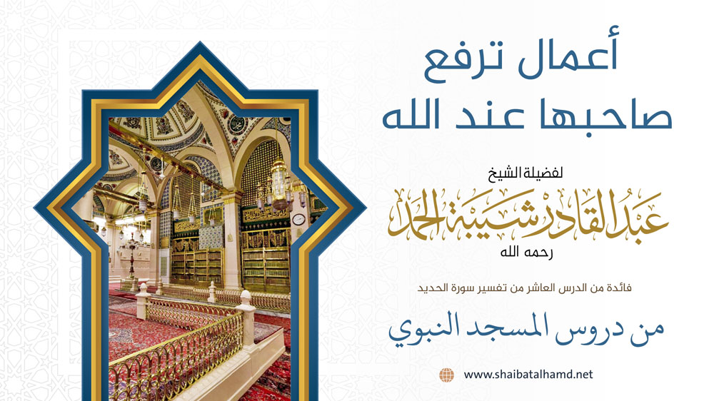 فائدة من الدرس العاشر من دروس تفسير سورة الحديد والتي ألقيت في المسجد النبوي الشريف حول أعمال ترفع صاحبها عند الله.