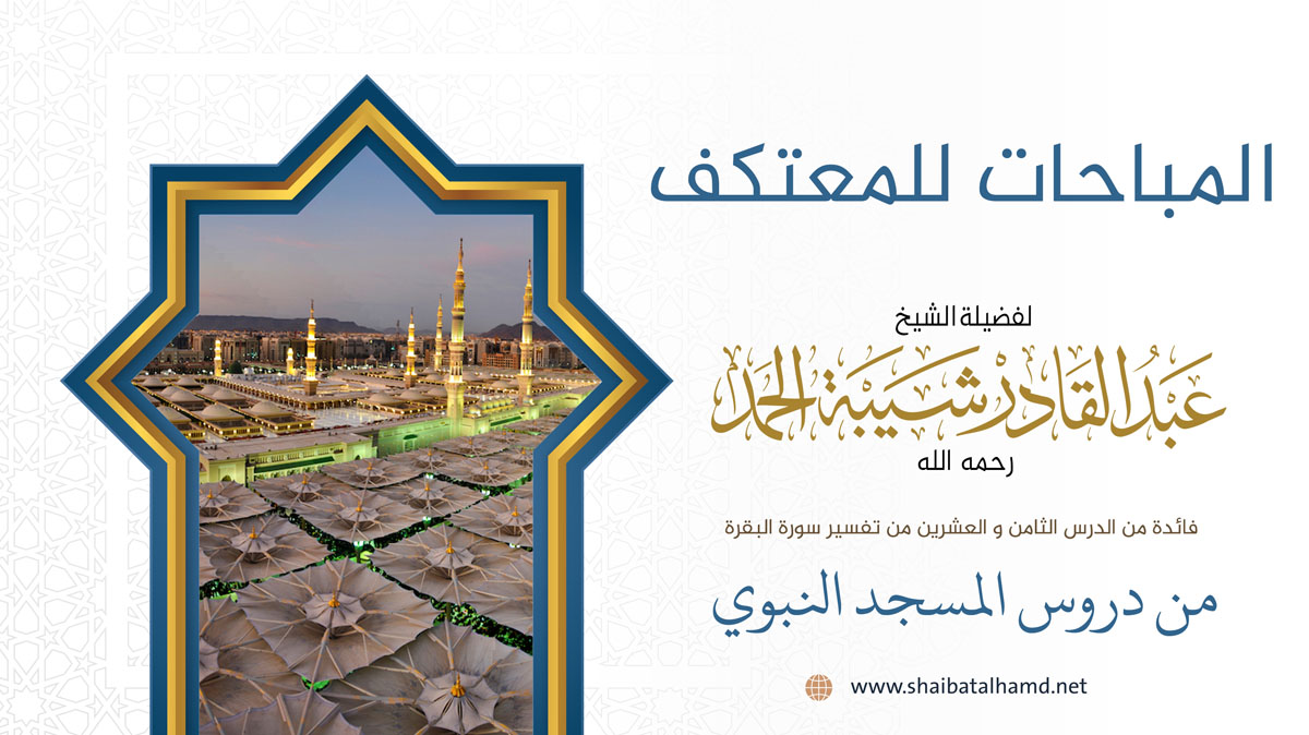 فائدة من الدرس الثامن والعشرون من دروس تفسير سورة البقرة والتي ألقيت في المسجد النبوي الشريف حول المباحات للمعتكف.