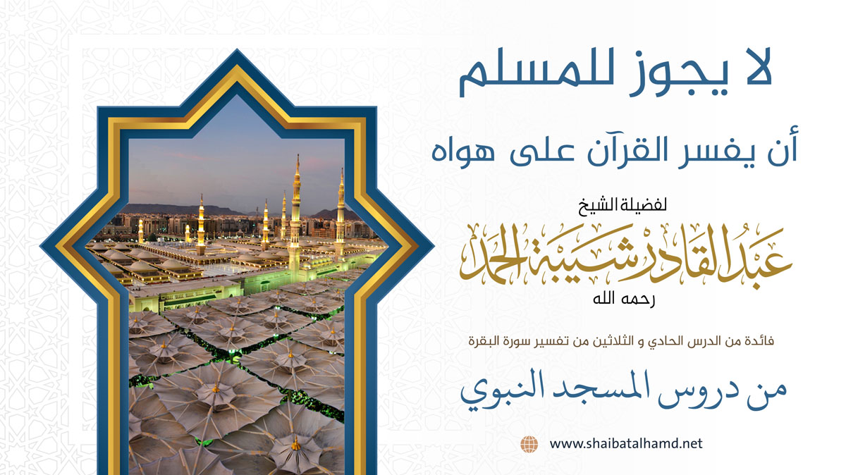 فائدة من الدرس الأول والثلاثون من دروس تفسير سورة البقرة والتي ألقيت في المسجد النبوي الشريف حول أنه لا يجوز للمسلم أن يفسر القرآن على هواه.