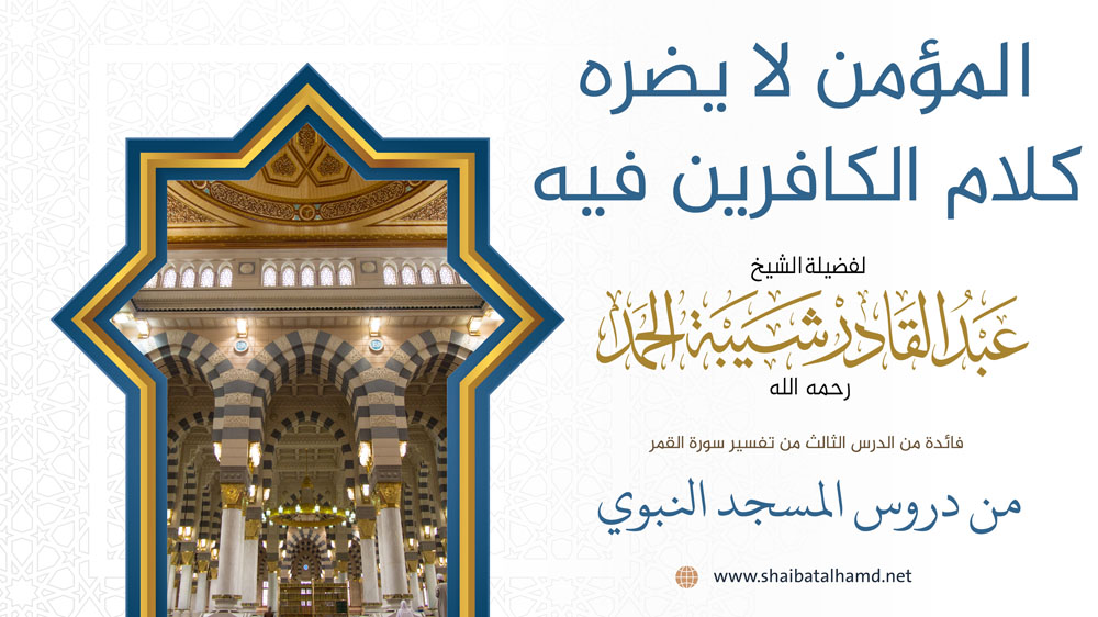 فائدة من الدرس الثالث من دروس تفسير سورة القمر والتي ألقيت في المسجد النبوي الشريف حول أن المؤمن لا يضره كلام الكافرين فيه.