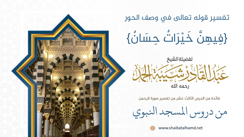 فائدة من الدرس الثالث عشر من دروس تفسير سورة الرحمن والتي ألقيت في المسجد النبوي الشريف حول معنى "خيرات" في قوله تعالى: {فيهن خيرات حسان}.