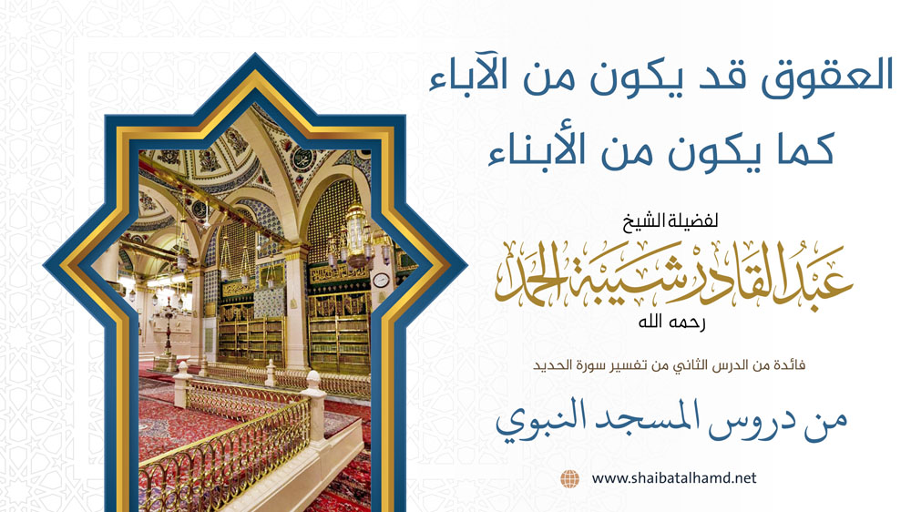 فائدة من الدرس الثاني من دروس تفسير سورة الحديد والتي ألقيت في المسجد النبوي الشريف حول العقوق قد يكون من الآباء كما يكون من الأبناء.