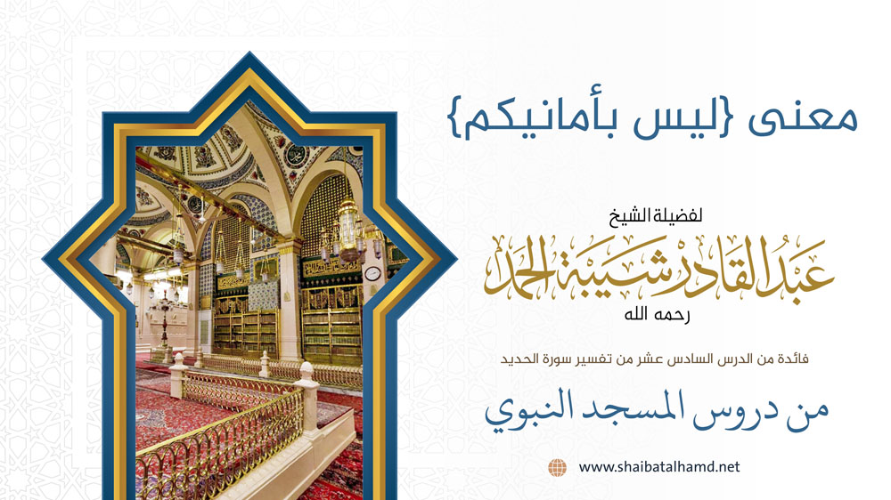 فائدة من الدرس السادس عشر من دروس تفسير سورة الحديد والتي ألقيت في المسجد النبوي الشريف حول معنى قوله تعالى: {ليس بأمانيكم}.