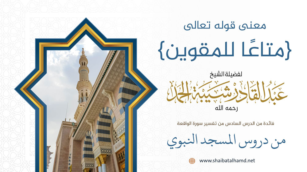 فائدة من الدرس السادس من دروس تفسير سورة الواقعة والتي ألقيت في المسجد النبوي الشريف حول معنى {متاعًا للمقوين}.