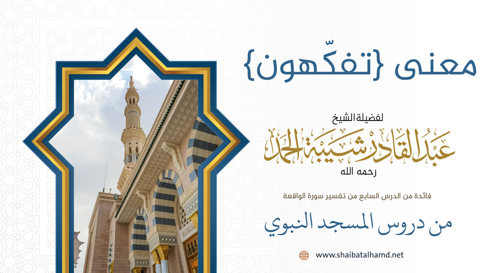 فائدة من الدرس السابع من دروس تفسير سورة الواقعة والتي ألقيت في المسجد النبوي الشريف حول معنى {تفكّهون}.