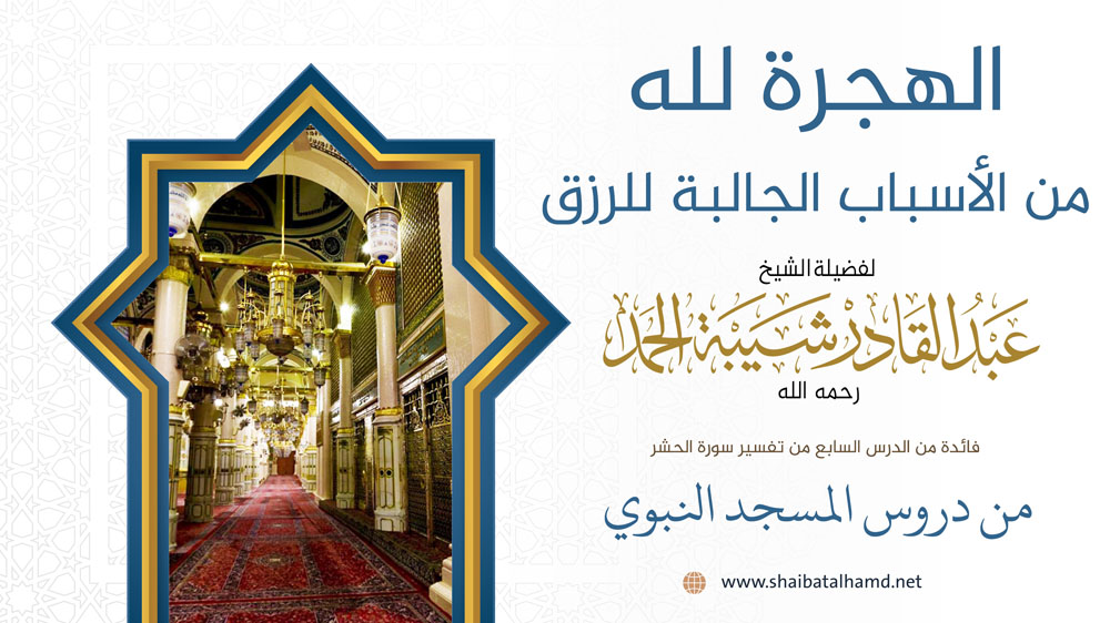 فائدة من الدرس السابع من دروس تفسير سورة الحشر والتي ألقيت في المسجد النبوي الشريف حول الهجرة لله من الأسباب الجالبة للرزق.