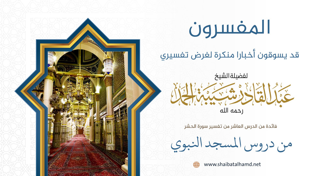 فائدة من الدرس العاشر من دروس تفسير سورة الحشر والتي ألقيت في المسجد النبوي الشريف حول أن المفسرون قد يسوقون أخبارا منكرة.