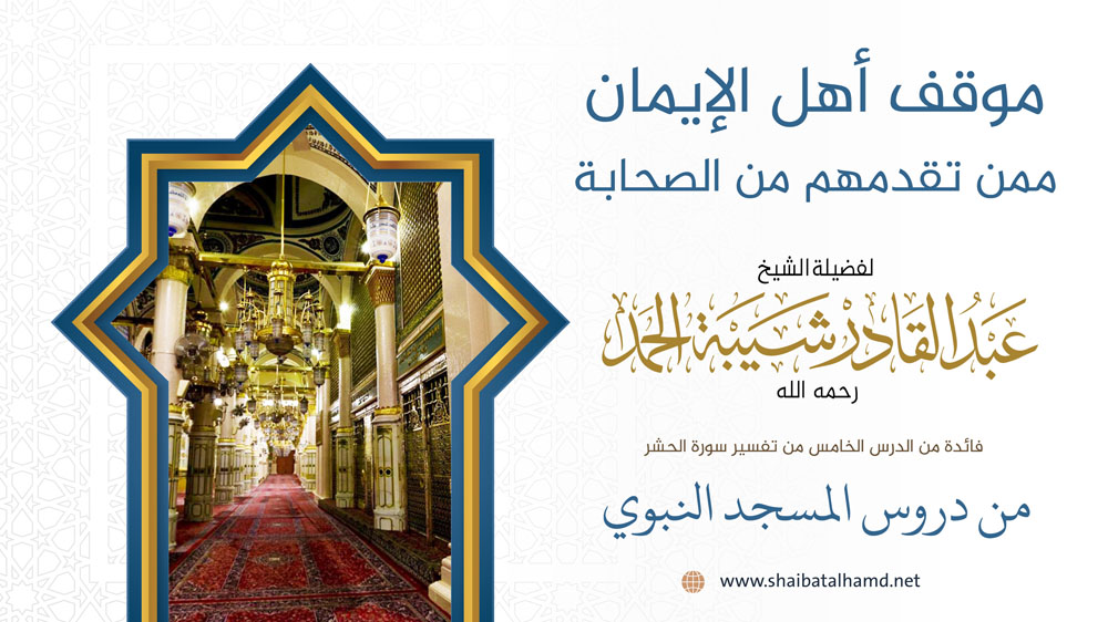 فائدة من الدرس الخامس من دروس تفسير سورة الحشر والتي ألقيت في المسجد النبوي الشريف حول قصة موقف أهل الإيمان ممن تقدمهم من الصحابة.