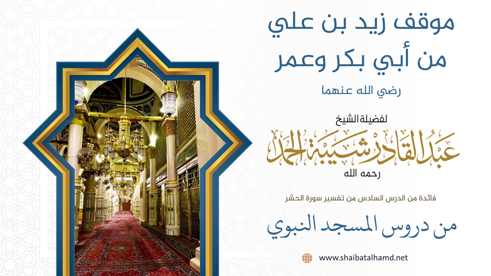فائدة من الدرس السادس من دروس تفسير سورة الحشر والتي ألقيت في المسجد النبوي الشريف حول موقف زيد بن علي من أبي بكر وعمر -رضي الله عنهما.