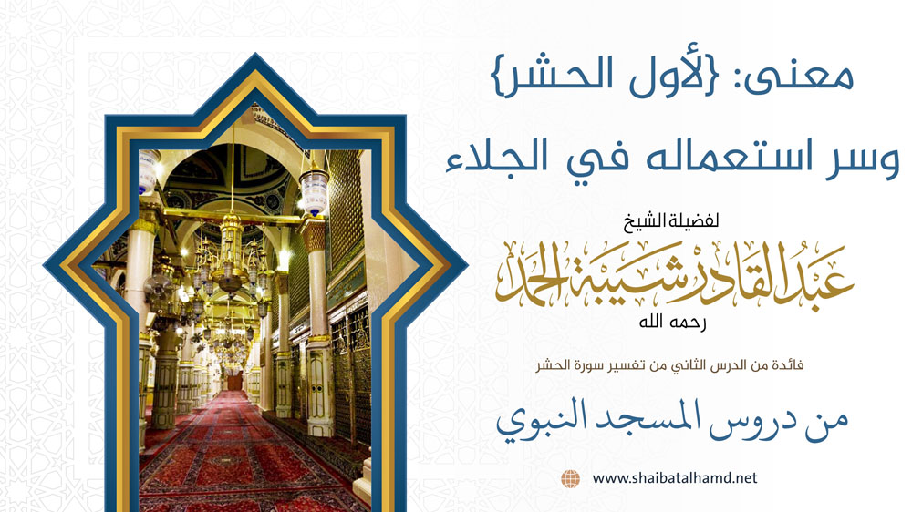 فائدة من الدرس الثاني من دروس تفسير سورة الحشر والتي ألقيت في المسجد النبوي الشريف حول معنى: {لأول الحشر} وسر استعماله في الجلاء.